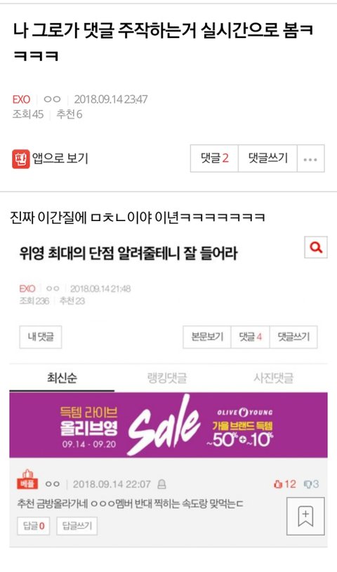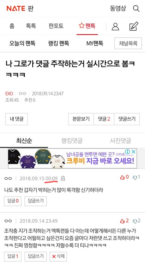 그리고 바로 자기 저격한 엑톡련 글에 와서 제발 팬들중에 추천 조작하는 애 있다고 말하고싶은지 추천박히는거 봤다고 굳이 또 발연기함ㅋㅋㅋㅋㅋㅋ 시간 9분ㅋㅋ