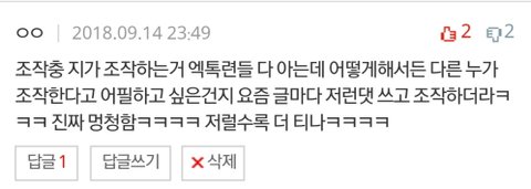 시간상 딱 보면 베톡 댓 지우고 대댓쓰고 저격 글 와서 다시 발연기 ㅅㅂㅋㅋㅋㅋㅋㅋㅋㅋㅋㅋㅋㅋㅋㅋㅋㅋㅋㅋ