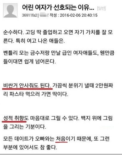 소름주의)남자들이 어린여자 좋아하는 이유