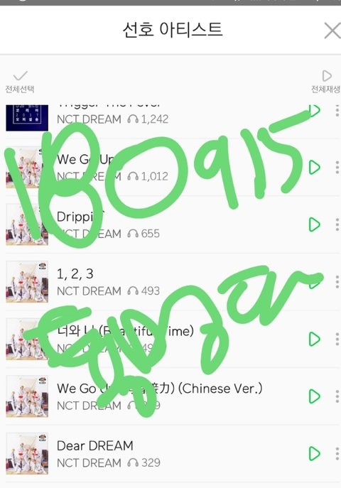 위의 예시를 따라서 쭉 스밍한 nct dream 곡들의 누적횟수를 인증해줘~