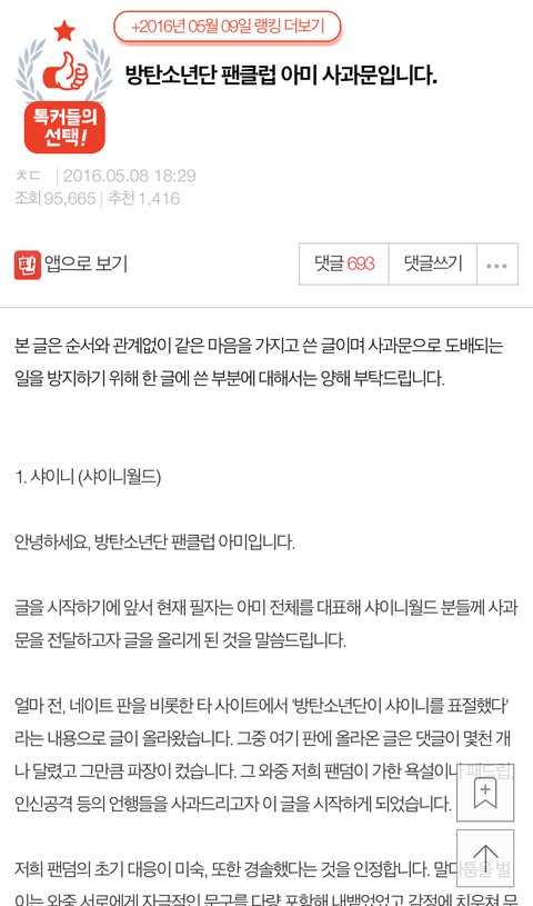 타팬덤 정치질로 휩쓸려서 사과문 올린 장본인들