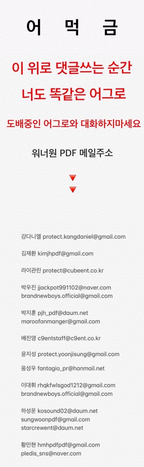소속사에서 뿐만 아니고 박지훈팬들 변호사 끼고 따로 팬덤에서도 고발중입니다 박지훈 광까들 또 시작이니 댓글달지말고 ㅇㅁㄱ 해주세요