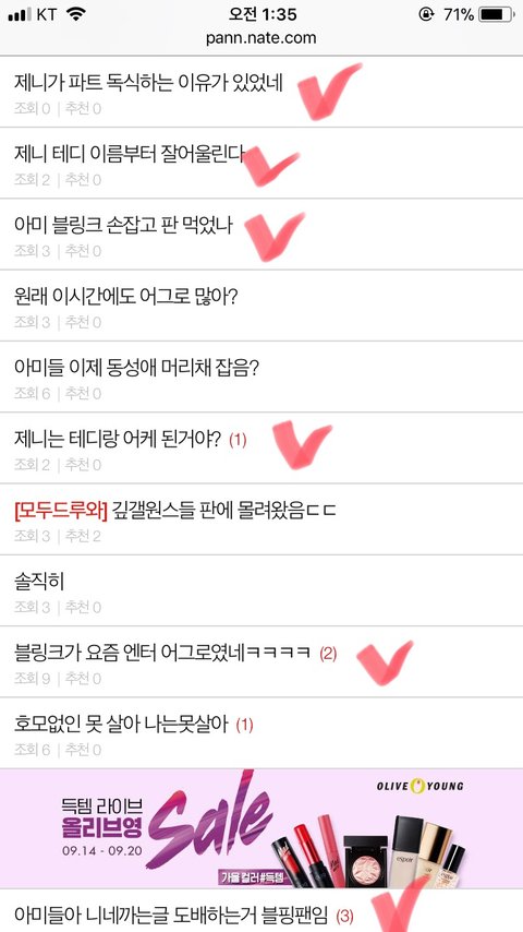 어젯밤엔 아미 블링크 이간질하다가 양 팬덤한테 다 ㅇㅁㄱ 당하고 안되니까 지금 현재 여친 블핑 이간질중