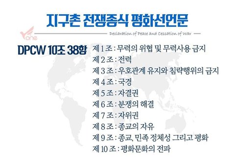 "지구촌 전쟁 종식 평화선언문(DPCW)를 제정해