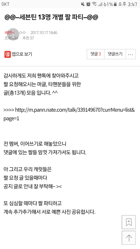 여기 들어가면 (팬톡공지 글 중 하나! 17년 10월 글)