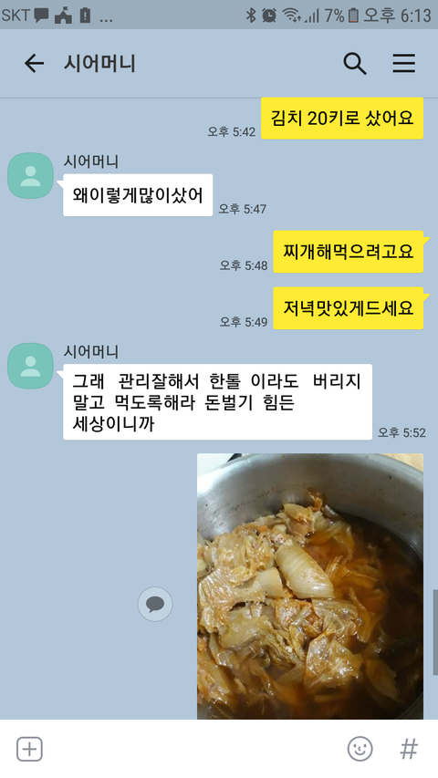 중국산김치산거 카톡으로 보여드리고