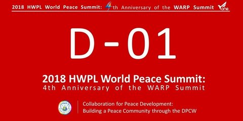 대한민국 인천 아시아드 주경기장에서 열리는 9.18평화만국회의 4주년 기념식이 하루 앞으로 다가왔습니다. 지금 우리 앞에 놓여있는 것에 주의를 기울이고 신경을 쓰면 더 잘 보이는 것처럼 카운트다운이 시작된 이 역사적인 행사에 전 세계의 시선이 고정되어 있습니다. 그리고 이 행사에 참석하기 위하여 벌써부터 117개국의 전.현직 대통령 및 정부 고위관료, 법조계 인사, 교육계 인사, 시민사회 지도자, 종교계 지도자, 언론 관계자 등 인사 2,000여명이 인천공항을 통하여 우리나라로 들어왔습니다.