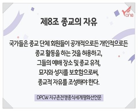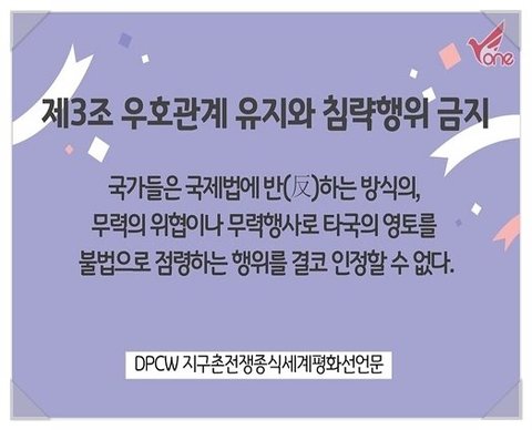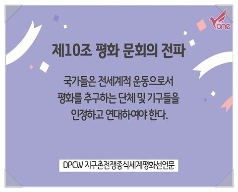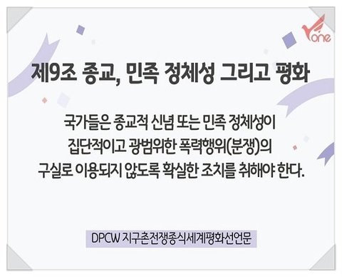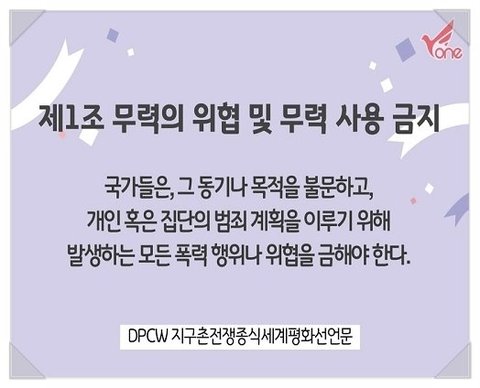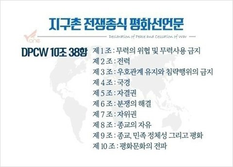 DPCW 바로 지구촌 전쟁종식 평화선언문인데요.