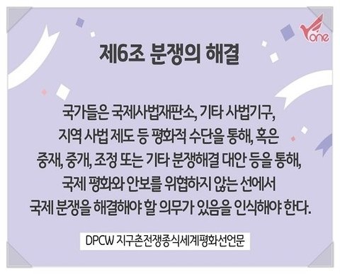 전쟁종식의 해답! DPCW 의 제 10조 38항 중 10조를 이 아침에 알려드립니다~~