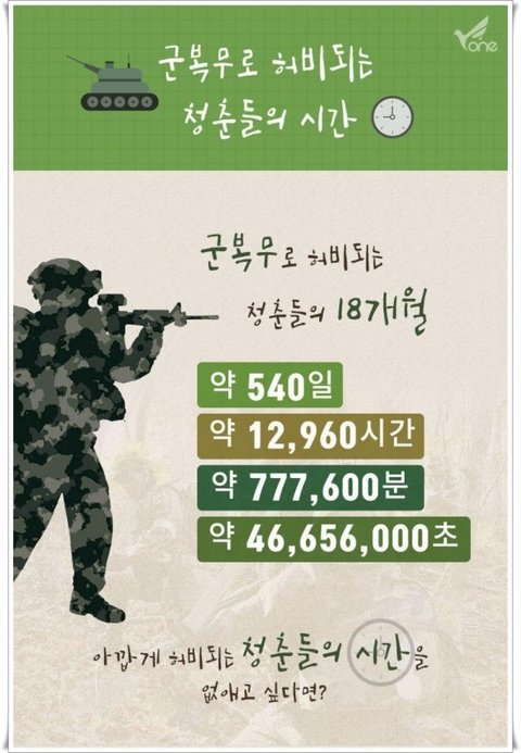 군 복무로 허비되는 청춘들의 시간이 자그마치 18개월