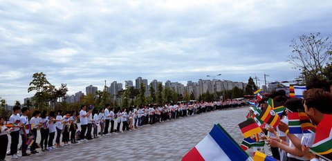 만국기가 날리고 시끌벅적 와글와글 신나는 음악소리