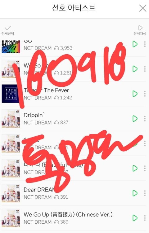 위의 예시를 따라서 쭉 스밍한 nct dream 곡들의 누적횟수를 인증해줘~