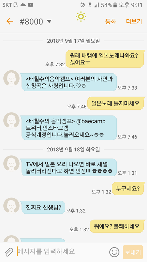 사연이나 퀴즈 정답을 보내면 자동으로 답문이 오는 건