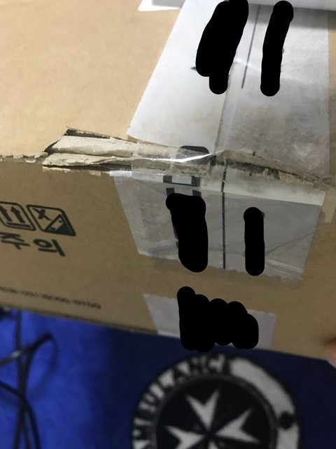 목요일 저녁에 퇴근하고 배송받은 상품을 뜯는데, 박스 포장상태가 이상했어요.