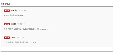진이는진짜 잘생겼다.........너무매력적으로생겨써....