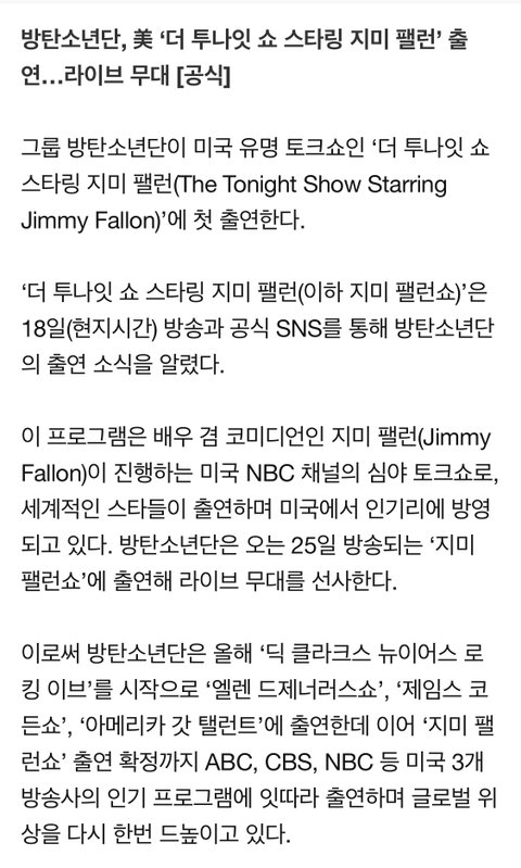 기사도 떴어!!!!! 투나잇쇼라니ㅜㅜㅜㅜㅜㅜ 이건 대박이다