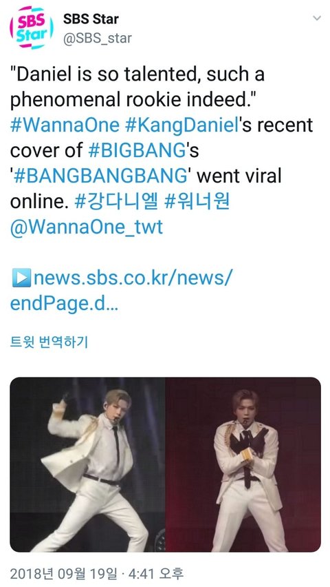 스브스스타짹 강다니엘 뱅뱅뱅 올라왔어 ㅋㅋㅋㅋ