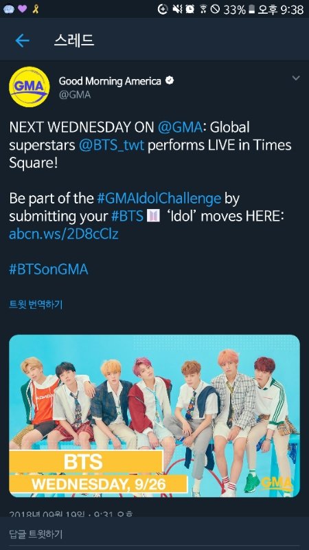 * 굿뭐닝아뭬리카는 40년 넘은 엄청나게 유명한 미국 아침뉴스프로이고 다음주 수요일 탄이들은 타임1스퀘어에서 게릴라 라이브를 한다는 얘기인듯! (짹에서 본 내용이야)