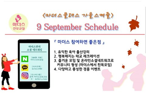 9월에마더스산모교실일정입니다
