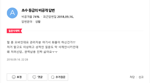 남들 다하는 질문을해도 운영자가 서비스 성격에 안맞는질문으로 삭재를 시키고 저를정지