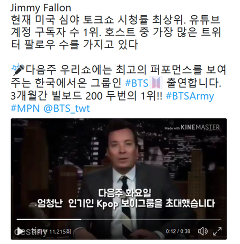 1. 지미팰런쇼 출연 확정