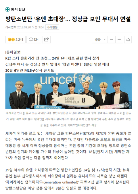방탄이 초청받고 연설할 장소는 뉴욕 유엔 본부 신탁통치이사회