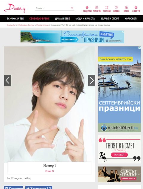 (나름 원문 사이트 조회수 12만인 규모있는 곳ㅋㅋ)에서 뽑은 세계 미남 1위 뷔