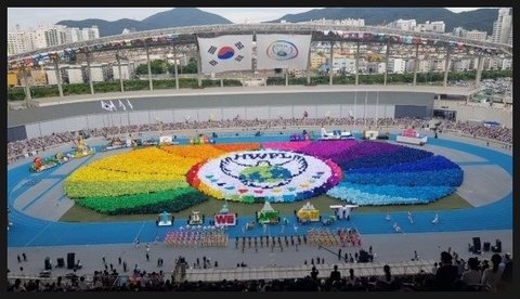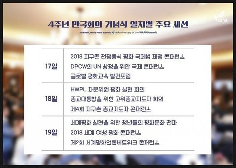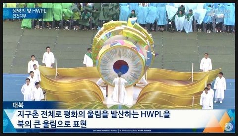 인천 아시아드 주경기장에서 평화 만국회의 4주년 기념식 행사를 통해