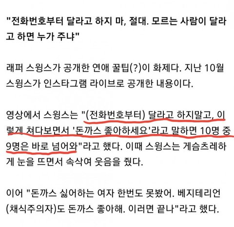 하다하다 스윙스한테까지 연애꿀팁을 듣네...