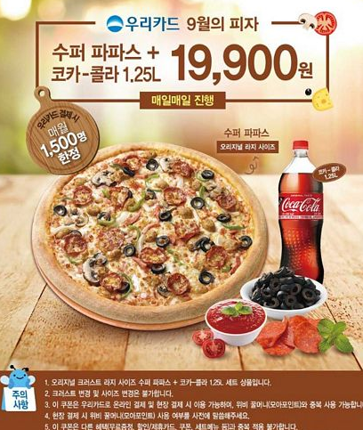 우리카드 9월의 피자 세트 19,900원