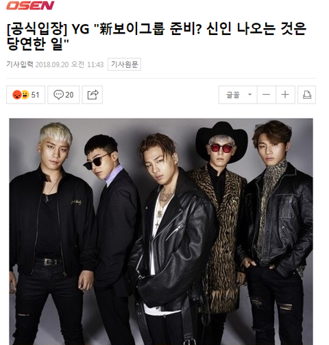 YG엔터테인먼트 측은 20일 "아이콘이 데뷔한 지 3년이 넘었고, 다른 대형 기획사들처럼 YG도 신인이 나오는 것은 당연한 일"이라며 "YG 방송팀들과 음악 프로듀서들의 움직임이 빠르게 감지되고 있는 것만은 사실"이라고 밝혔다.