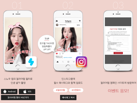 인스타에 해시태그 (#컬러어떰, #으깬장미) 두개만 놓고 포스팅하고