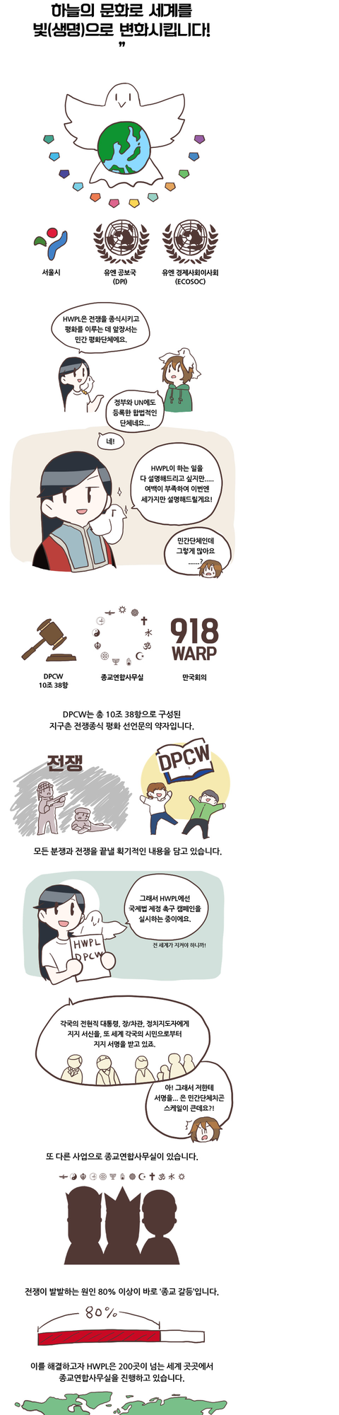 이 DPCW를 만든 단체 HWPL과 HWPL이 하는 일이 무엇이 있는지 웹툰으로 보여주겠소.
