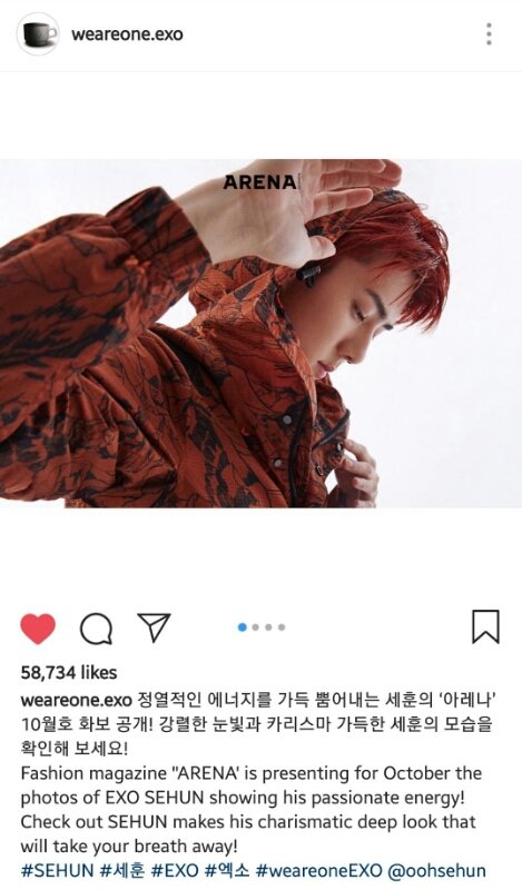 정열적인 에너지를 가득 뿜어내는 세훈의 ‘아레나’ 10월호 화보 공개! 강렬한 눈빛과 카리스마 가득한 세훈의 모습을 확인해 보세요! 오세훈 화보장인 화보천재