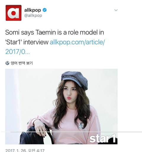 시즌1의 우승자 전소미 - 롤모델이 샤이니 태민