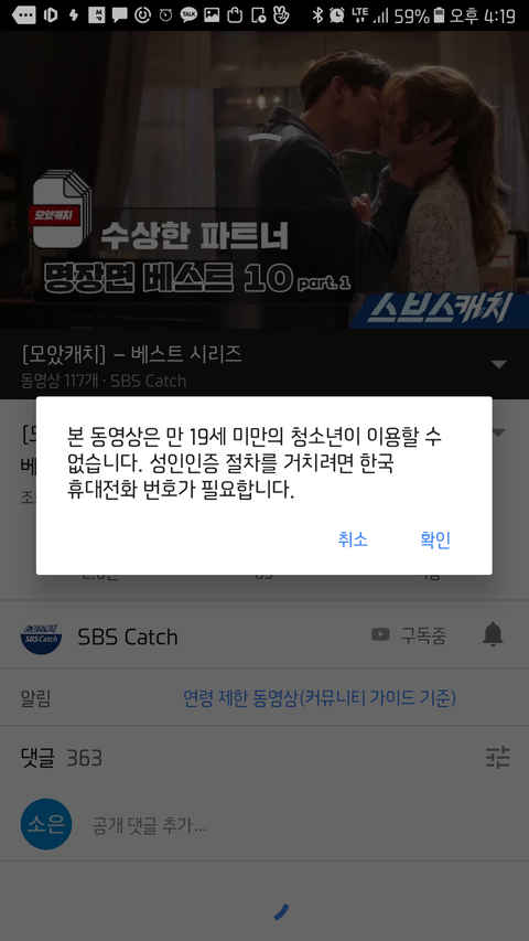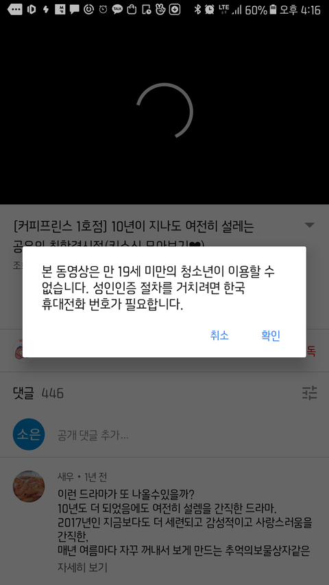 야 너네 유튜브에서 키스신 19금으로 바뀌고있는 거 암??