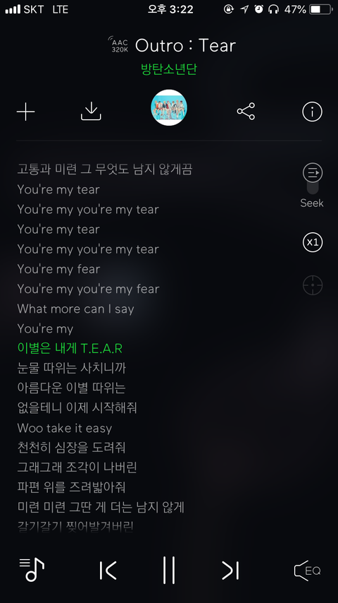 라고 적혀있는데 슈가 부분은 T.E.A.R로 적혀있지 하는 순간 티이에이알~ 이라고 들림ㅋㅋㅋ
