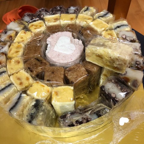 여러 떡이 개별포장 되어 있는 떡케익입니다