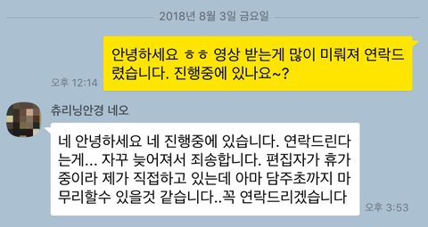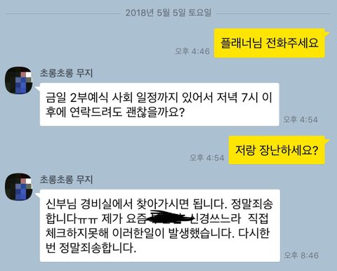 이후 제가 직접 영상 업체와 연락을 주고받으며 일이 원만히 해결되는 줄 알았지만 한달에 한번꼴로 연락이 되는 영상업체, 이제는 영상업체랑 신부님이랑 둘이 알아서 하라는 듯한 웨딩업체 대표, 사과도 연락도 하지않고 보란듯이 꾸준하게 박람회를 열고다니는 플래너.. 저도 너무 지쳐갑니다....