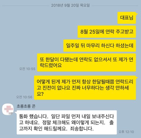 내일 연락드릴게요, 다음주에 연락드릴게요, 곧 연락드릴게요 하는게 벌써 5개월이 지나가고 있습니다.. 여전히 진전이 없고 저만 애가 탑니다..