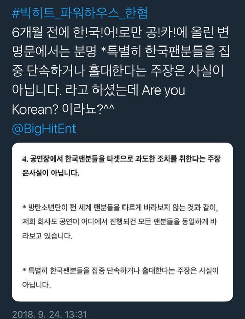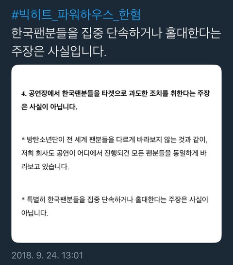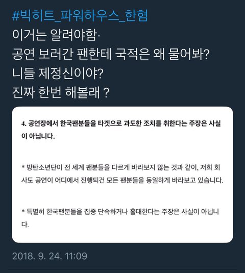??짹에서만 하면 말 안 들으니 커뮤에서도 난리 쳐야 한다고??커뮤는 더 말 안 듣지ㅋㅋㅋ애초에 저번 협업 취소는 (짹총공/이멜총공/공카총공)으로 인해서 성립된거나 마찬가지였음. 판에서 공론화했던 움직임은 별 의미도 없이 아티스트 까판 생성에만 잔뜩 일조하는 꼴이었고. 예전에도 이런 비슷한 콘서트 병크로 판에서 팬들이 엄청나게 까댔던 적이 있는데 당시에 빅히트는 아무런 반응 없었고ㅋㅋㅋ. 무조건 이런 글 막는 팬 보고 빅히트 후빨러라고 욕하는 건 도대체 무슨 논리임? 판에서 하는 공론화는 제 역할조차 하지 못함. 니들이 정의구현하겠답시고 앞뒤 안가리고 판에서 공론화해도 빅히트는 커뮤의 목소리는 듣지 않고, 결국은 안티들 까판 만들어주는 일, 안티만도 못할 일이고...득이 전혀 없고 실만 가득한 행동이라고. 제발 생각 좀 하고 글을 올리든지 하자.