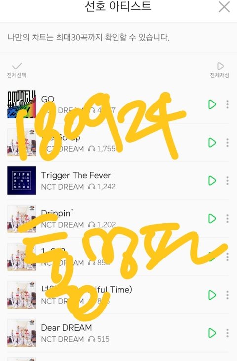 위의 예시를 따라서 쭉 스밍한 nct dream 곡들의 누적횟수를 인증해줘~