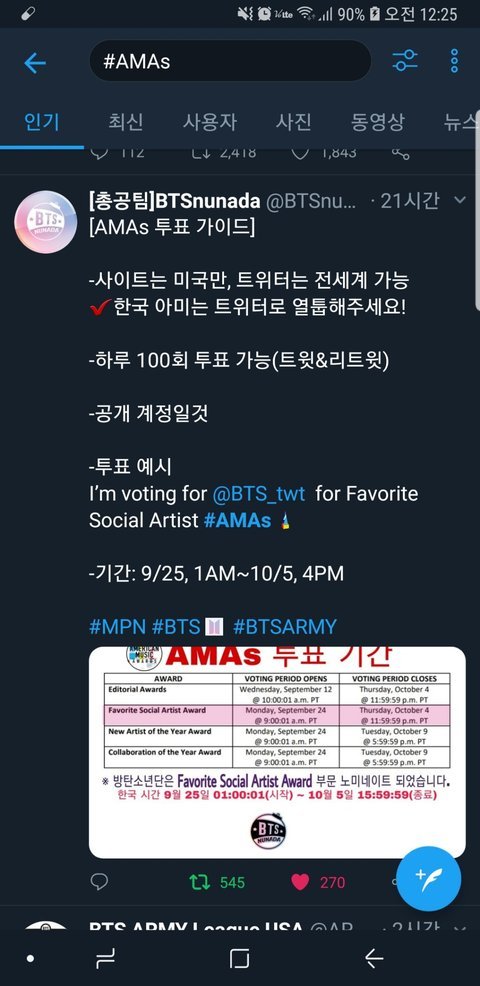 AMA에서는 처음으로 후보에 올랐으니