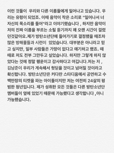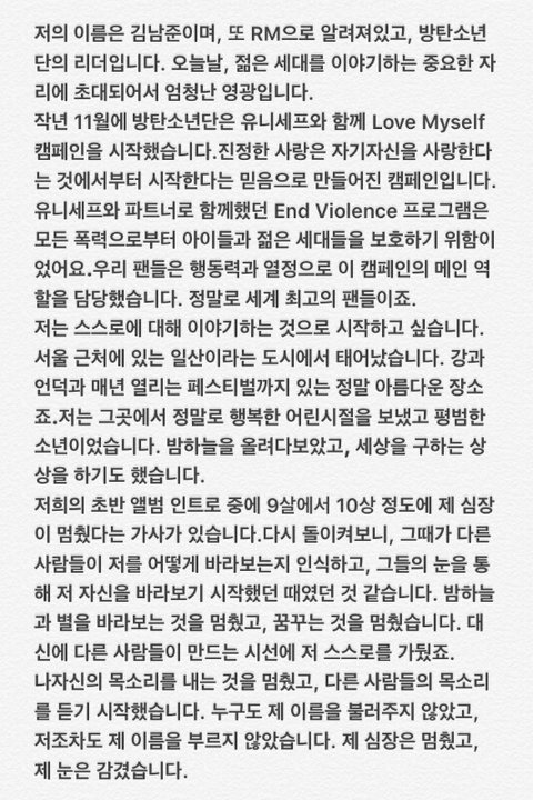 알엠=남준이가 약6분동안 연설한 내용