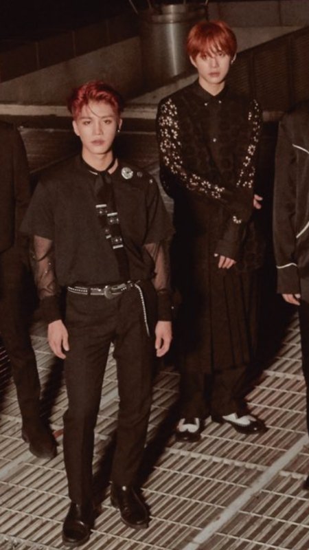 태일이 의상 전체분위기에 꽤 중요한듯 네오해서 맘에듦 약간 체인느낌도나고 빨간머리랑 넘 잘어울림 소매 소재랑 어깨에 포인트 개좋아