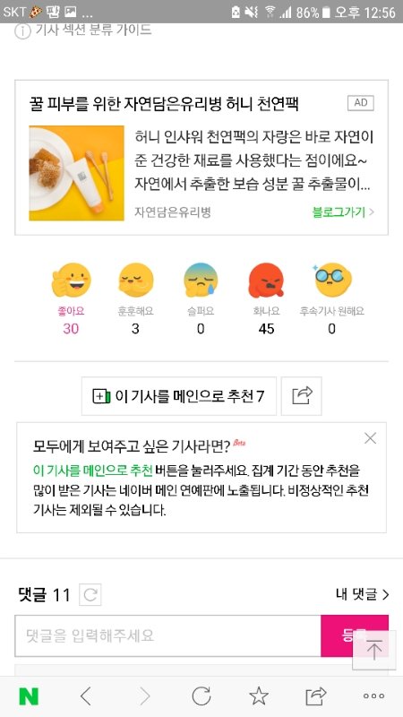 네이버 기사 들어가서 댓글정화좀 같이 해주라