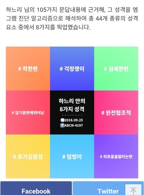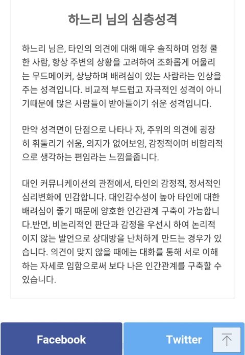 ㄹㅇ개맞음..........내가 봐온 성격테스트 중에서 제일 잘 맞음..ㅋㅋㅋㄱㅋㅋㅋㅋ +)네ㅇ버에 8가지 성격이라고 검색하면 나와 광고아니구 판녀시다아니야~~~~