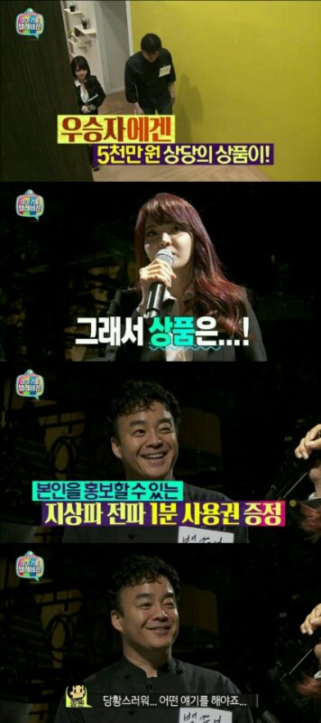 첫 우승으로 1분간의 자기 PR 기회를 얻게 됨