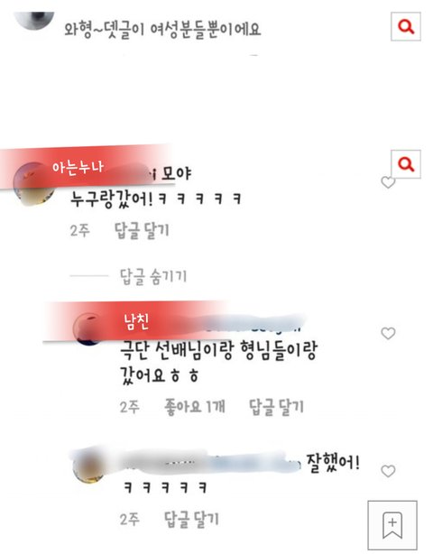 빨간색 1,2번은 친한극단대표형 여친의