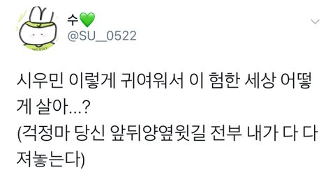 이 험한세상 살기엔 시우민 너무 쟉고 예쁘고 귀여워서 걱정돼ㅠㅠㅠㅠㅠㅠㅠㅠㅠㅠㅠㅠㅠ 그 누구라도 울 소중한 시우민 건드리면 가만안도!!!!!!
